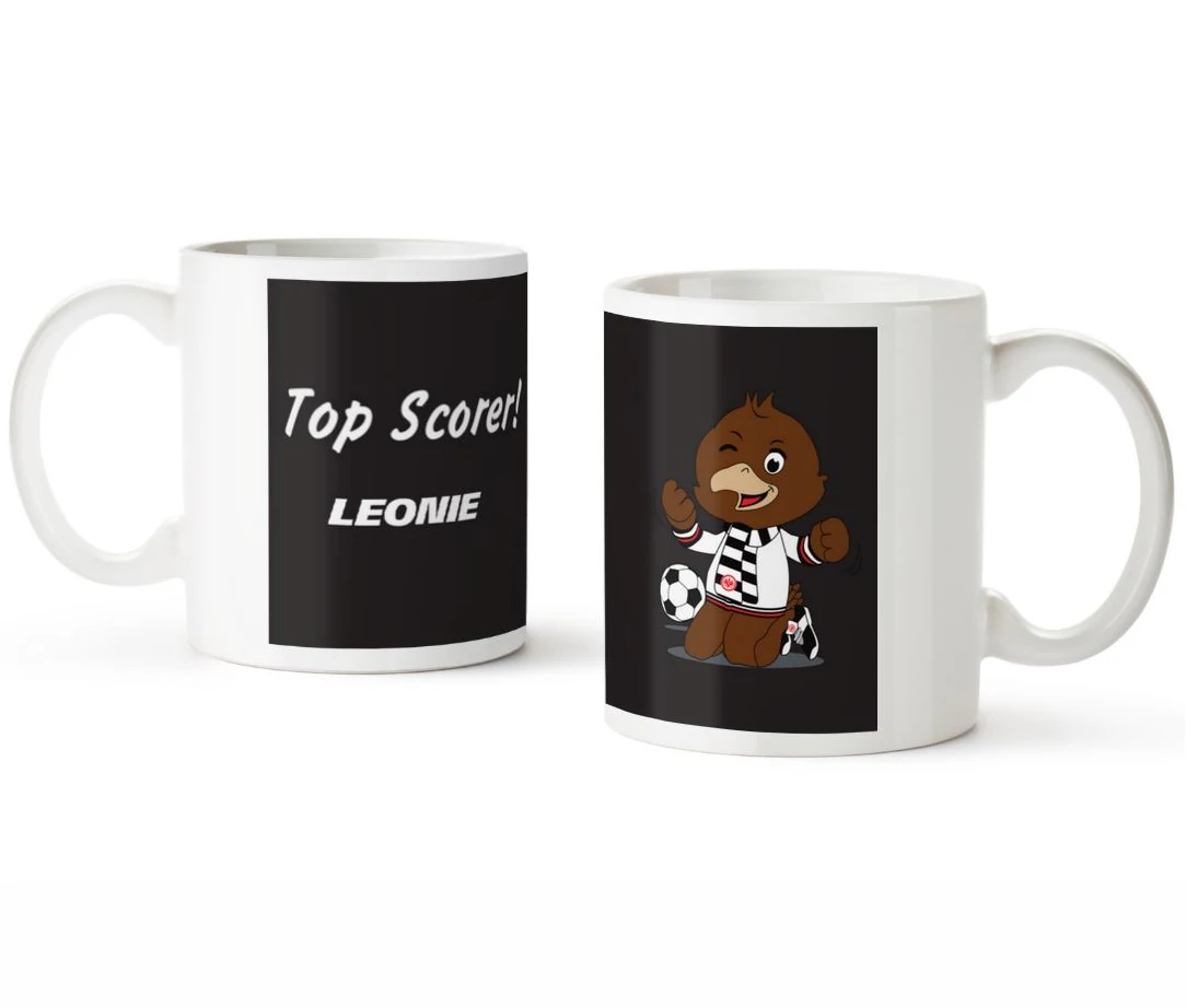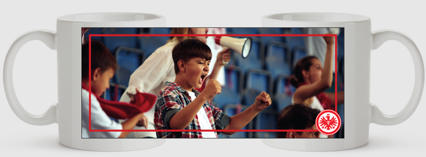 Diese personalisierbare Keramiktasse kann mit verschiedenen Eintracht Frankfurt Motiven und einem individuellen Schriftzug gestaltet werden.